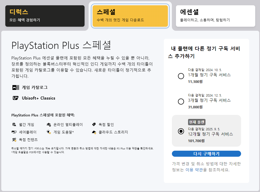 처음 구독을 할 때, 월간 게임 + 게임 카탈로그 때문에 스페셜을 선택했고, 그나마도 무료 게임을 거의 즐기지 못했습니다.