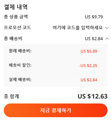 가격: 총 $12.63 (상품 $9.79 + 배송 $2.84)
