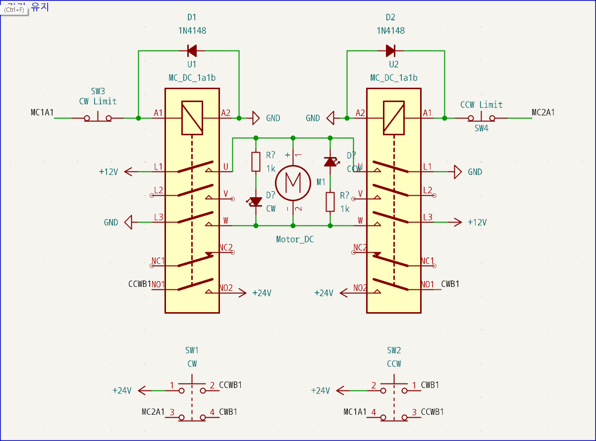SW1 버튼을 누르면 MC2가 꺼지고 MC1이 켜지며 모터가 정회전 한다. 버튼을 떼어도 동작을 유지한다.