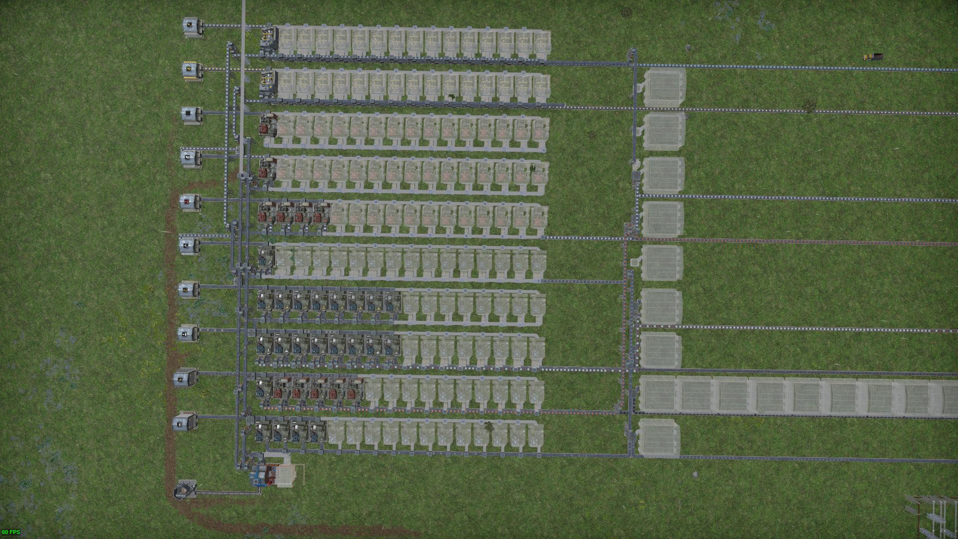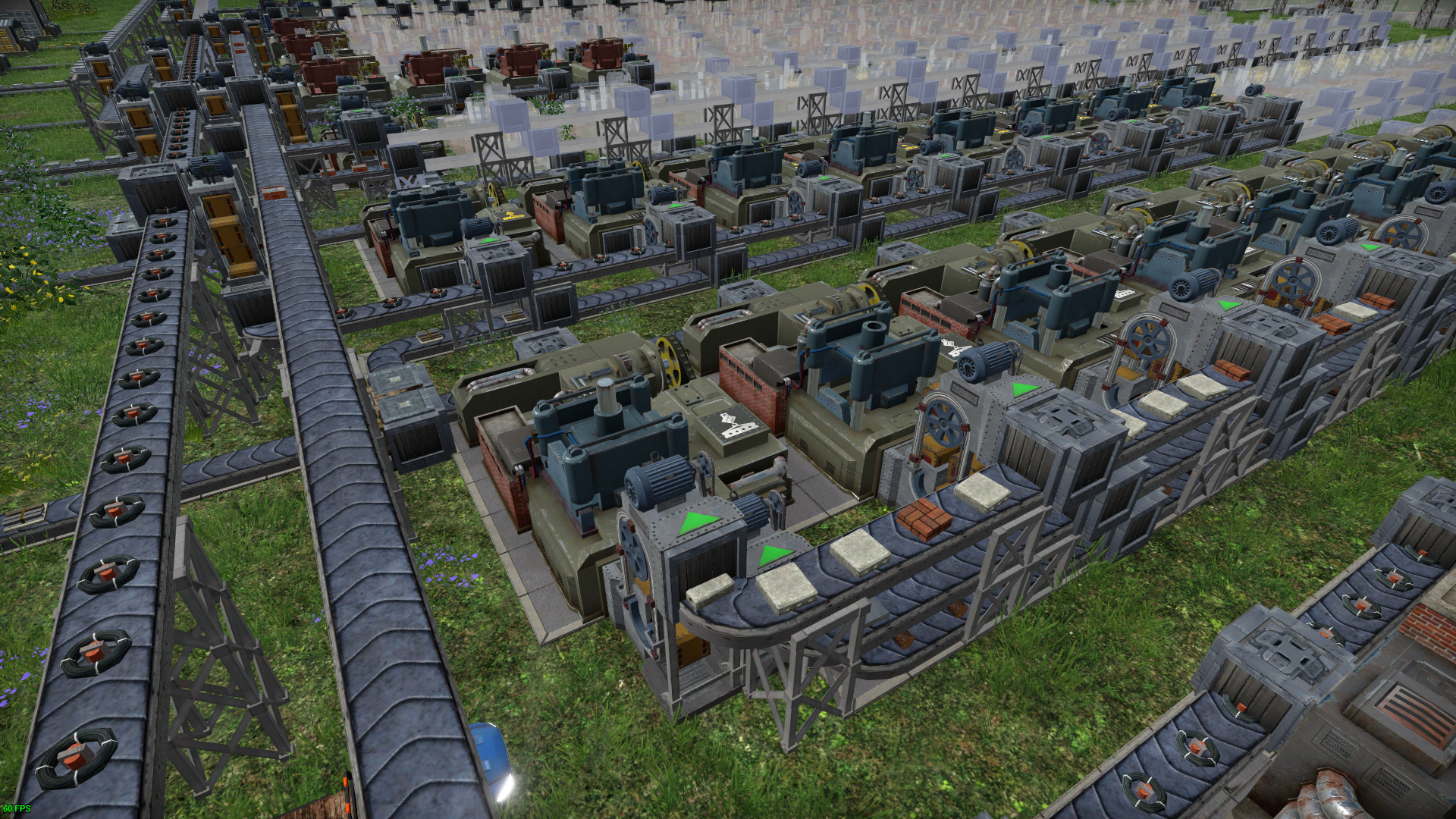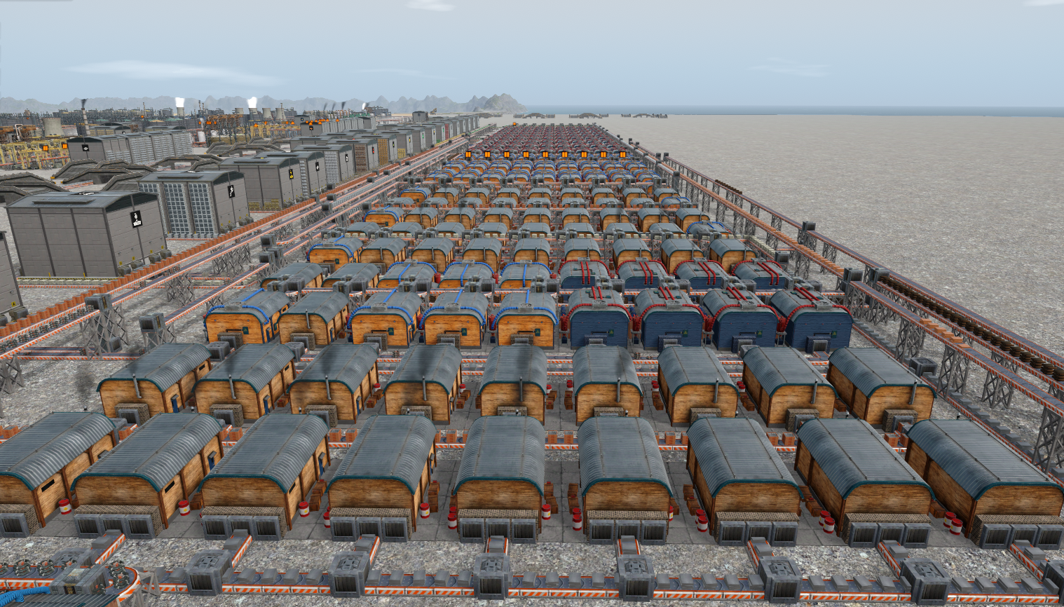 위 배치는 같은 제품을 생산하는 조립동을 18개씩 그룹화하여 배치한 모습이다. 전자 부품은 항상 부족한 상태이다.
