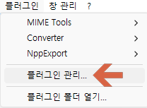 주 메뉴의 플러그인 - 플러그인 관리...를 누른다.