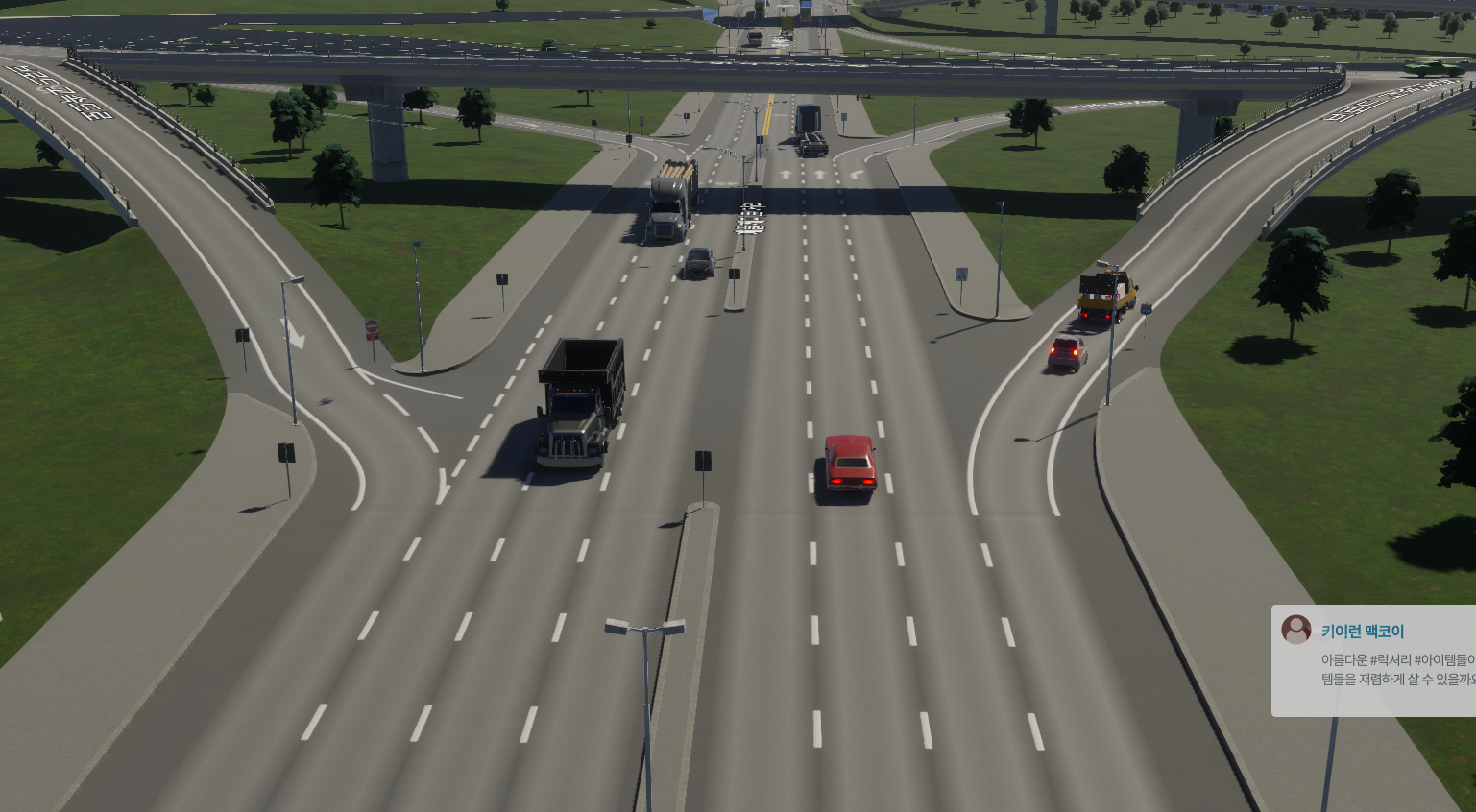 일방통행 1차로 도로를 우측에 연결하면 위 스샷처럼 된다. 그 다음 교차로 근처의 도로를 7차로 도로로 변경한다.