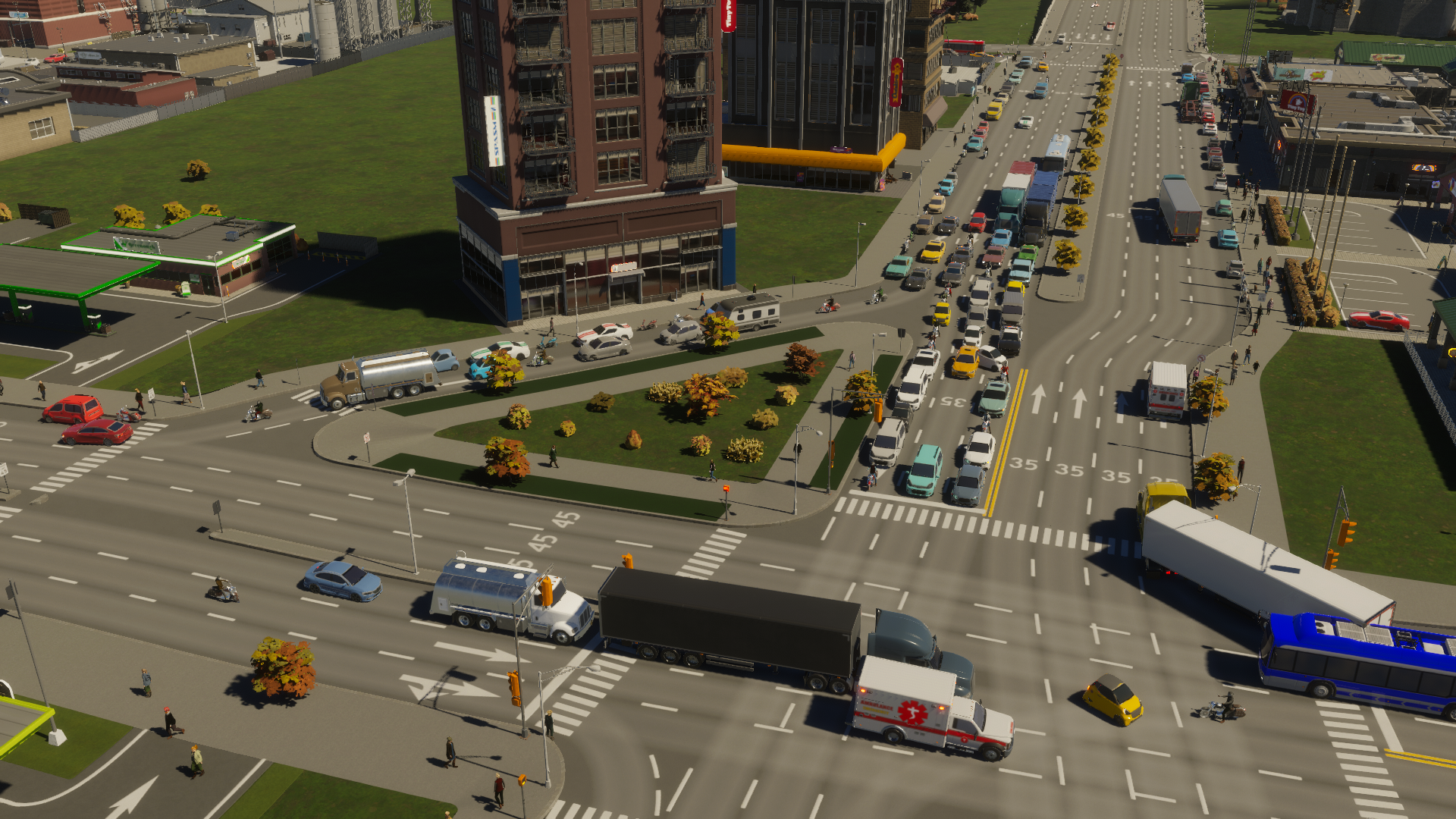 좌회전을 금지시켜 유턴을 막을 수 있다. 우회전을 금지시켜 우회전 전용만 우회전하도록 한다. 어차피 게임에서는 위반을 하지만...