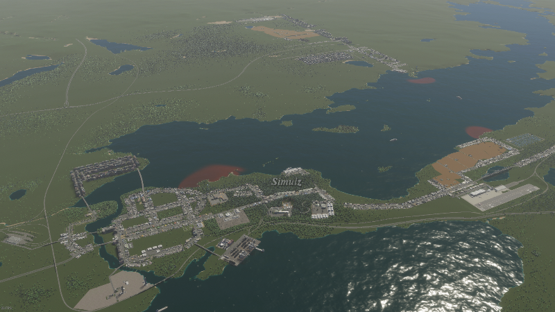 주거 지역과 공업 지역을 나누고 교통비 수익을 얻고 있다. 고속도로 JC가 너무 멀~리 있어서 걷거나 자가용 운행이 어렵다. 선박, 비행기로 이동할 수 있다.