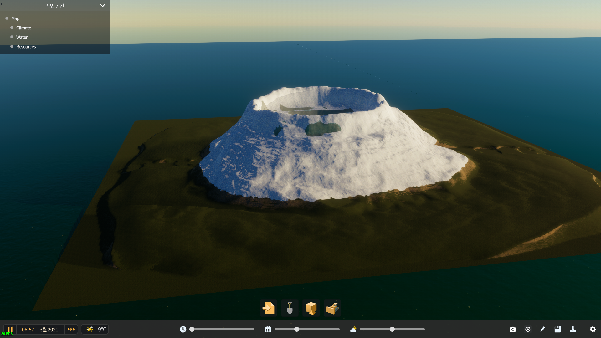큰 섬을 만들고 새 게임을 시작해 본다.