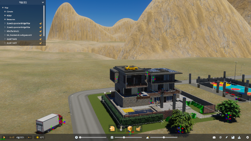 조경 작업이 되고, 물 종류별로 위치와 특성 지정