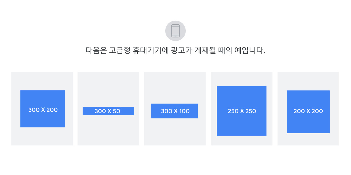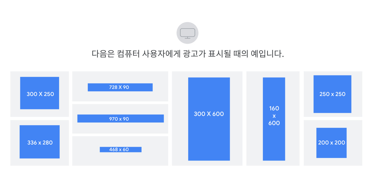 | 970x90 | '큰 리더보드'라고도 합니다. 이 크기는 동영상, 사진, 애니메이션 및 애플리케이션 등의 고화질 콘텐츠를 제공하는 데 효과적입니다. |