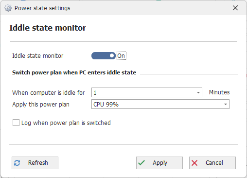 아이들 시 CPU 전원 계획을 지정할 수 있다.