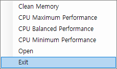 마우스 우측 버튼으로 시스템 트레이의 퀵 CPU 아이콘을 누르면 세 가지 전력 계획을 즉시 변경할 수 있다.