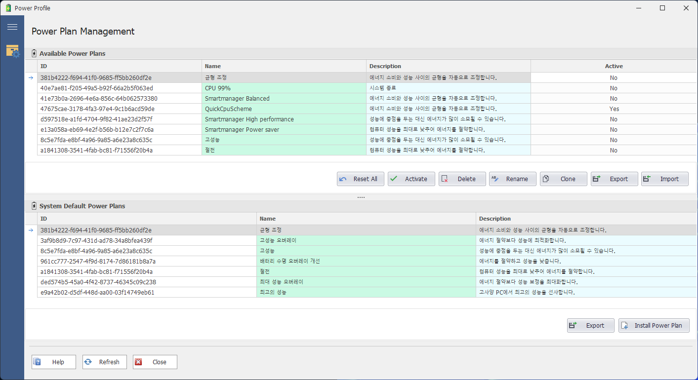 윈도우의 전력 설정 추가·삭제·활성화를 퀵 CPU에서 할 수 있다.