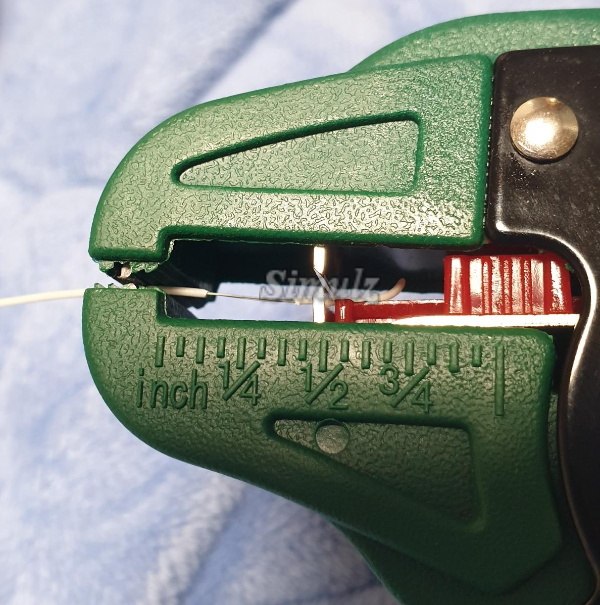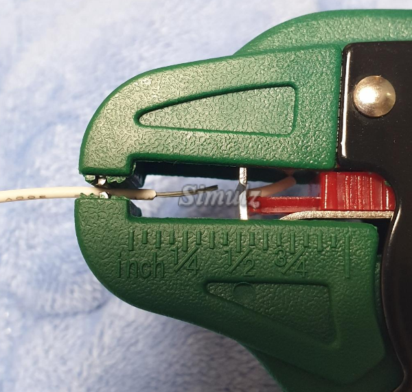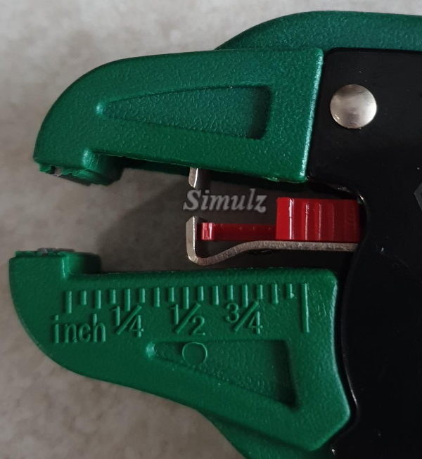 빨간색의 가이드로 벗기고 싶은 피복의 길이를 설정합니다. 눈금 표시가 mm가 아닌 것이 매우 아쉽습니다.