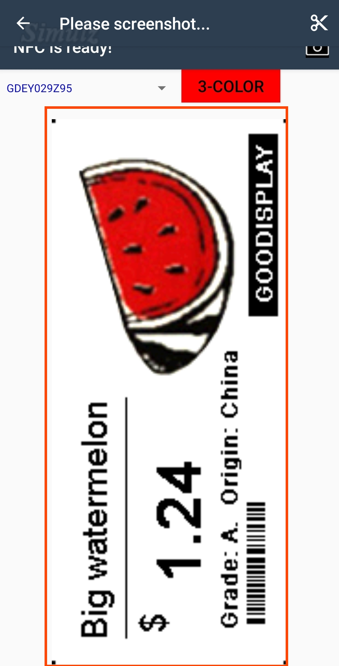 COLOR 2.9 INCH NFC ESL Red, NFC-Powered, Paper-Like Displaying, No Battery Required, Only Android phones, Supports Personalized Customization INTRODUCTION GDN029R is a 2.9 inch Color E-paper Display NFC-powered Electronic Shelf Label, adopts novel passiv