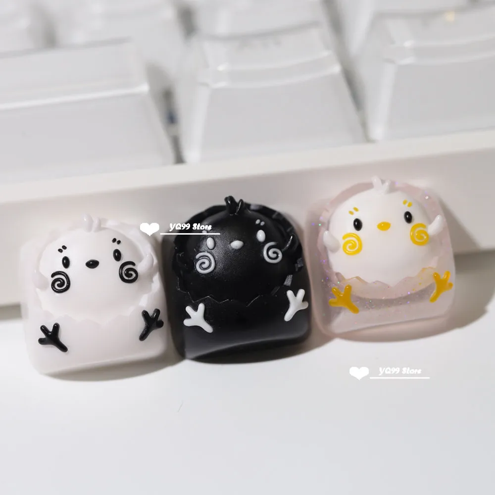 0.49US $ 90% OFF|Personalized Cute Resin Small Black Chicken Keycap Personality White ESC Keys Cross Axis Game Mechanical Keyboa