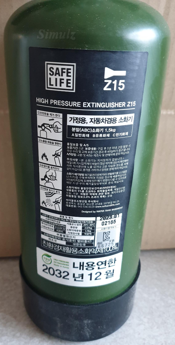 품명: 워터탱크베이스먼트 SAFE LIFE Z15 분말 ABC 소화기