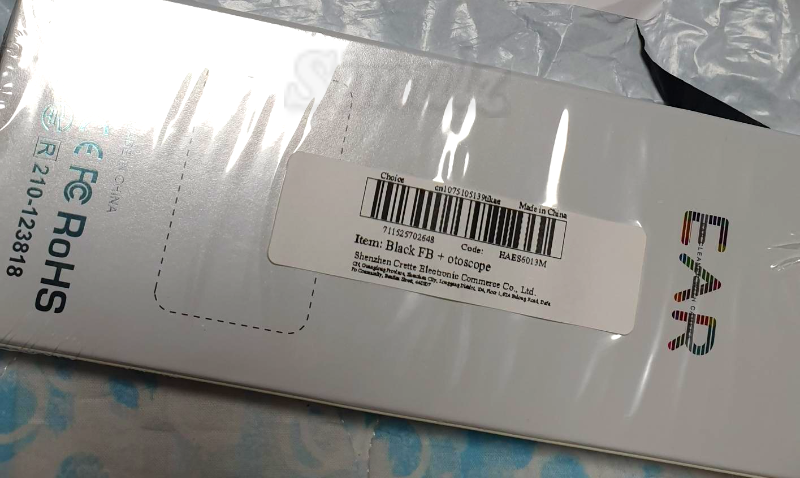 박스는 비닐로 밀봉되어 있습니다. CE FC RoHS 인증 글자가 큼직합니다.