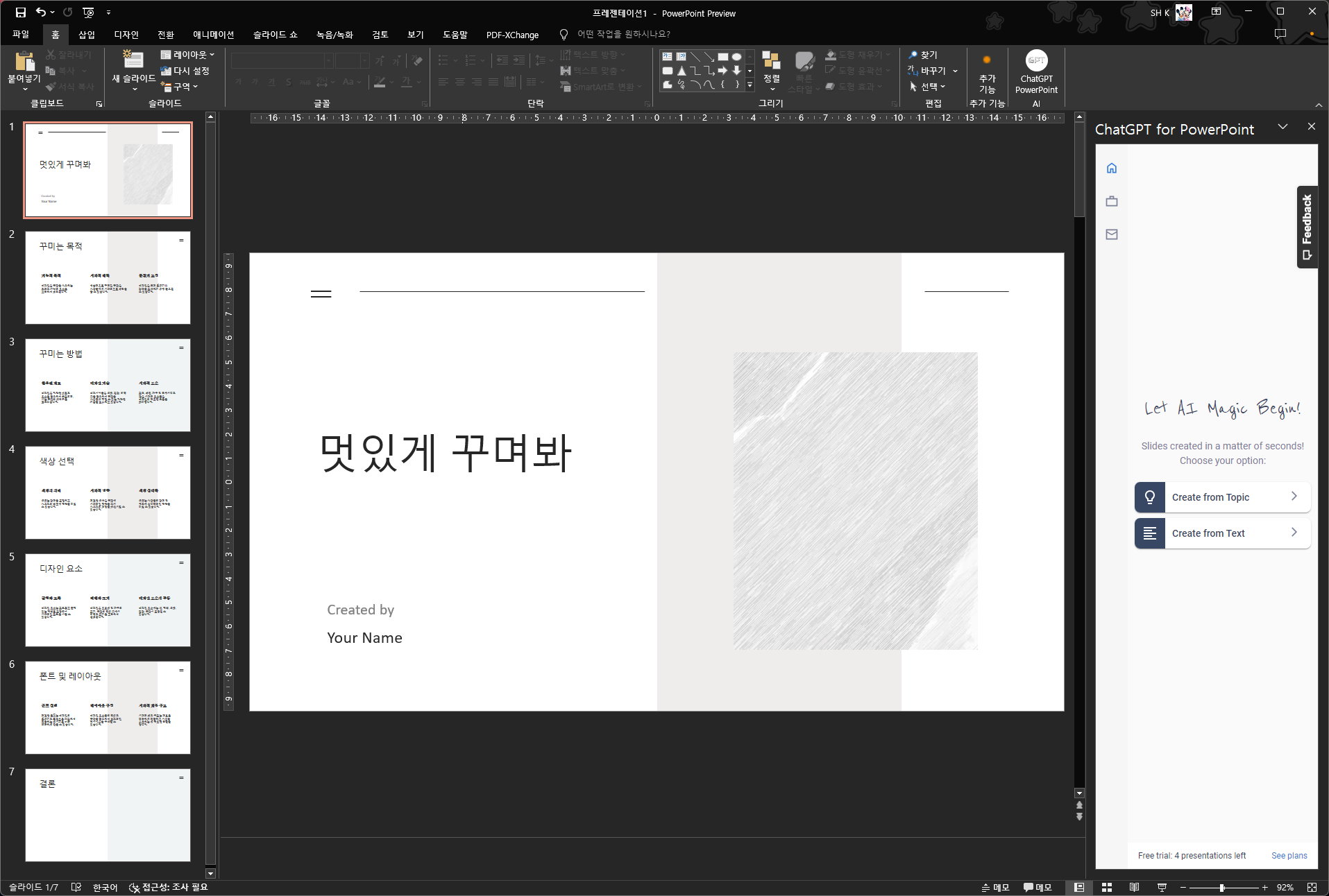 파워포인트에서는 ChatGPT로 슬라이드 양식을 만들 수 있습니다.
