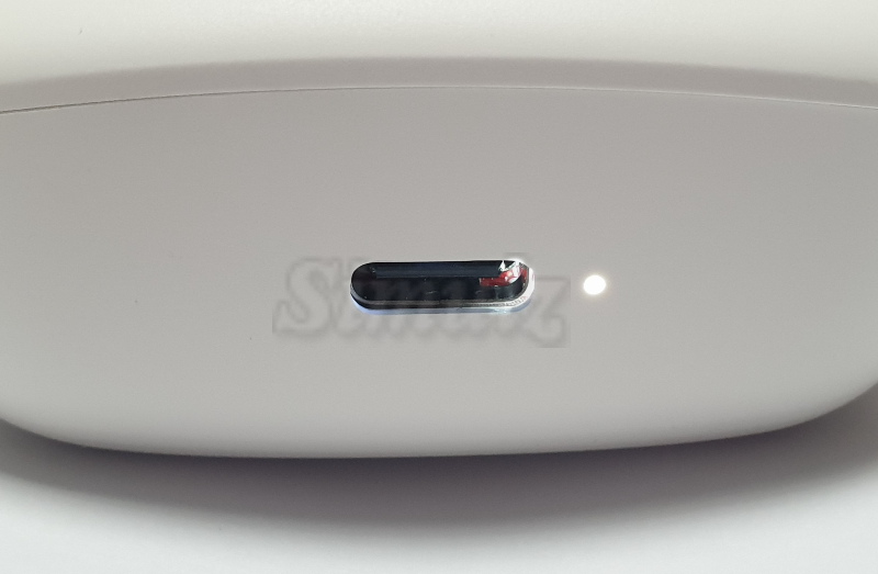 🔼케이스 뒷면에는 USB-C 포트와 흰색 LED가 있습니다. 충전 중일 때에는 적색이 켜집니다.