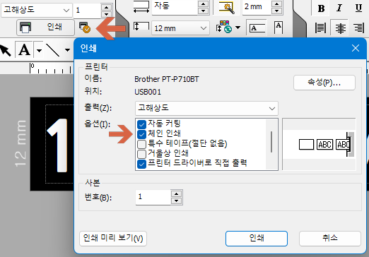 자동 커팅 기능으로 매우 편리해졌는데, 기본값인 체인 인쇄 기능을 끄고 사용하게 되면 낭비가 되는 문제가 발생합니다.