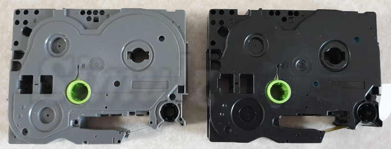 저~기 위의 라벨 뒷면 사진을 보면 정품과 구멍이 다릅니다. 이 구멍의 역할은 라벨 방향, 라벨 색상을 기기에 알려줍니다. 프린터 내부에 검핀이 있어요. 라벨 크기 감지 구멍은 윗면에 있습니다.