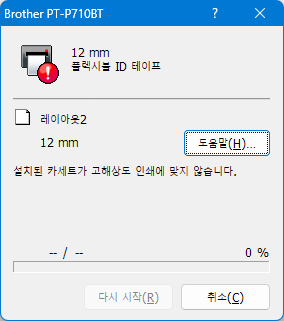그런데 호환 라벨 테이프로는 고해상도 출력이 안 됩니다. 오류 메시지가 뜹니다.