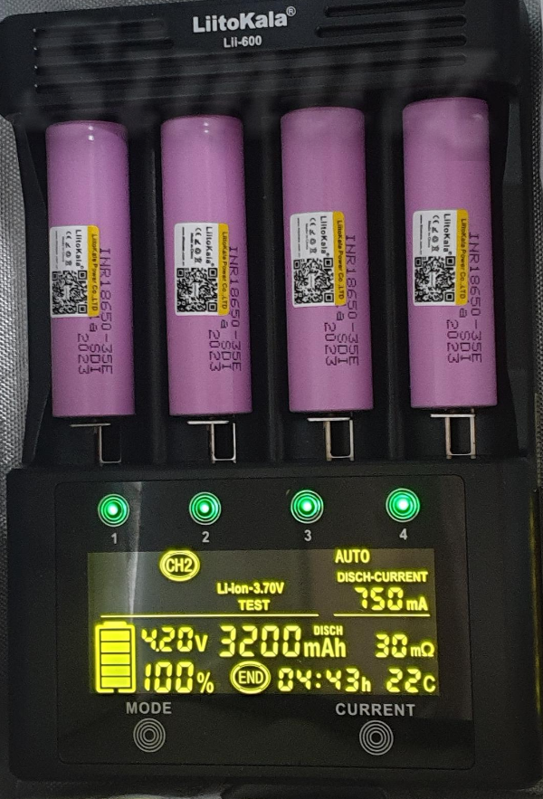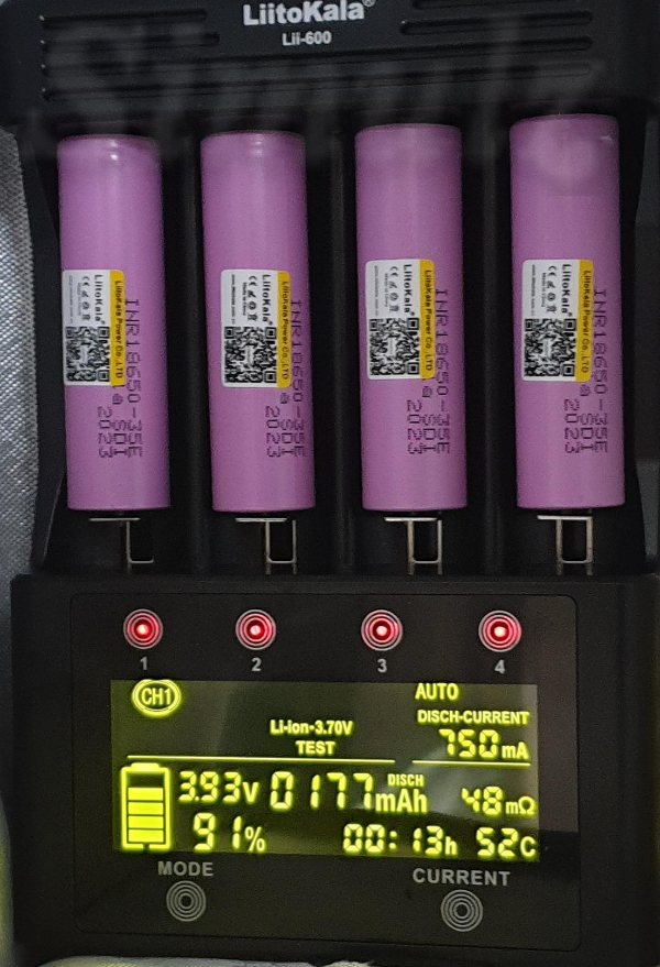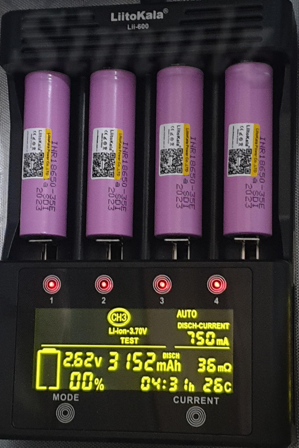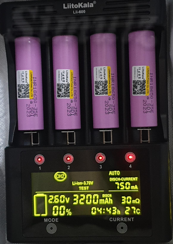 CH1 사진은 방전을 시작한 지 13분 되었습니다. CH2, CH3 사진은 2.6V 00%까지 방전된 상태입니다. 750mA로 방전했을 때 4시간 30분 이상 소요되었습니다. 이 방전 용량이 배터리 실제 용량입니다.