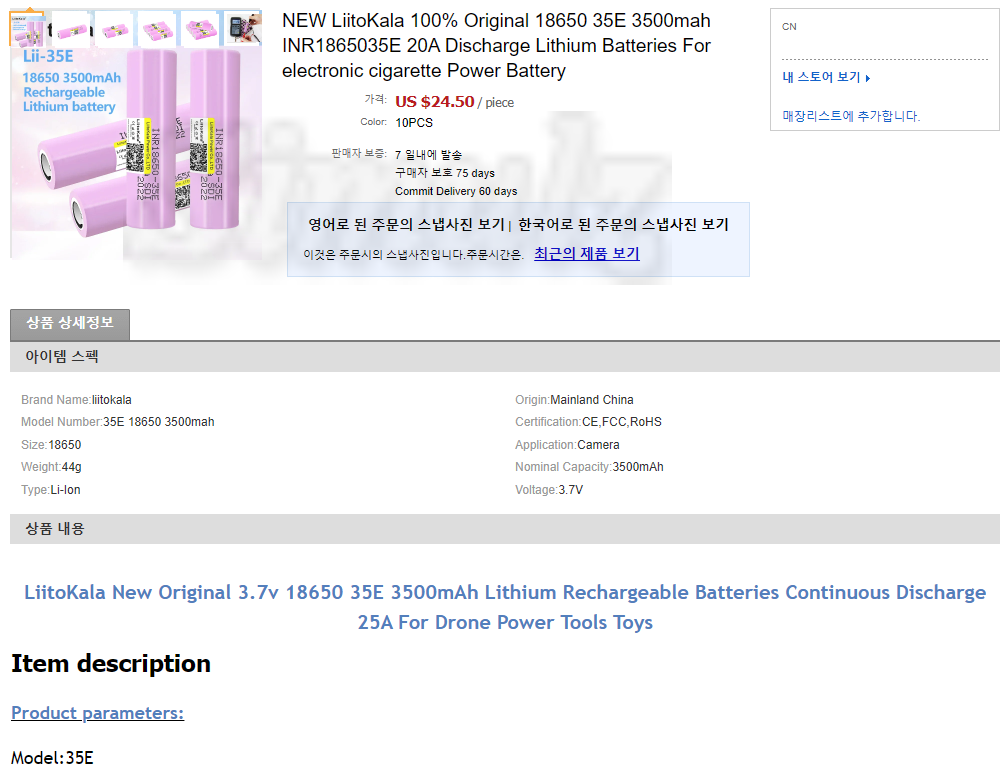 리튬계 배터리는 인산철이라 하더라도 싸잡아서 폭발 위험물로 간주하여 항공 운송을 제한합니다. 해상 운송으로 배송되었는데도 주문 9일 만에 집에 도착할 정도로 배송이 매우 빨랐습니다.