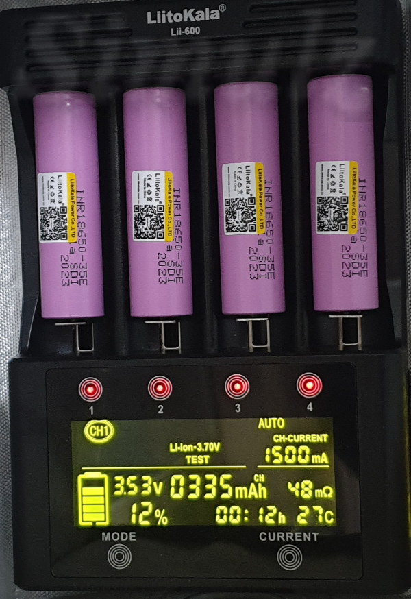 방전을 했으니 다시 사용할 수 있도록 충전을 합니다. 배터리의 내부 저항에 따라 충전 전류가 자동으로 설정됩니다.