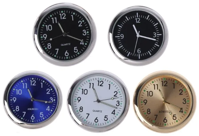 옛날 클래식 자동차처럼 차에 붙이거나 클립으로 고정하거나 구멍을 뚫어 박을 수 있는 바늘 시계입니다.