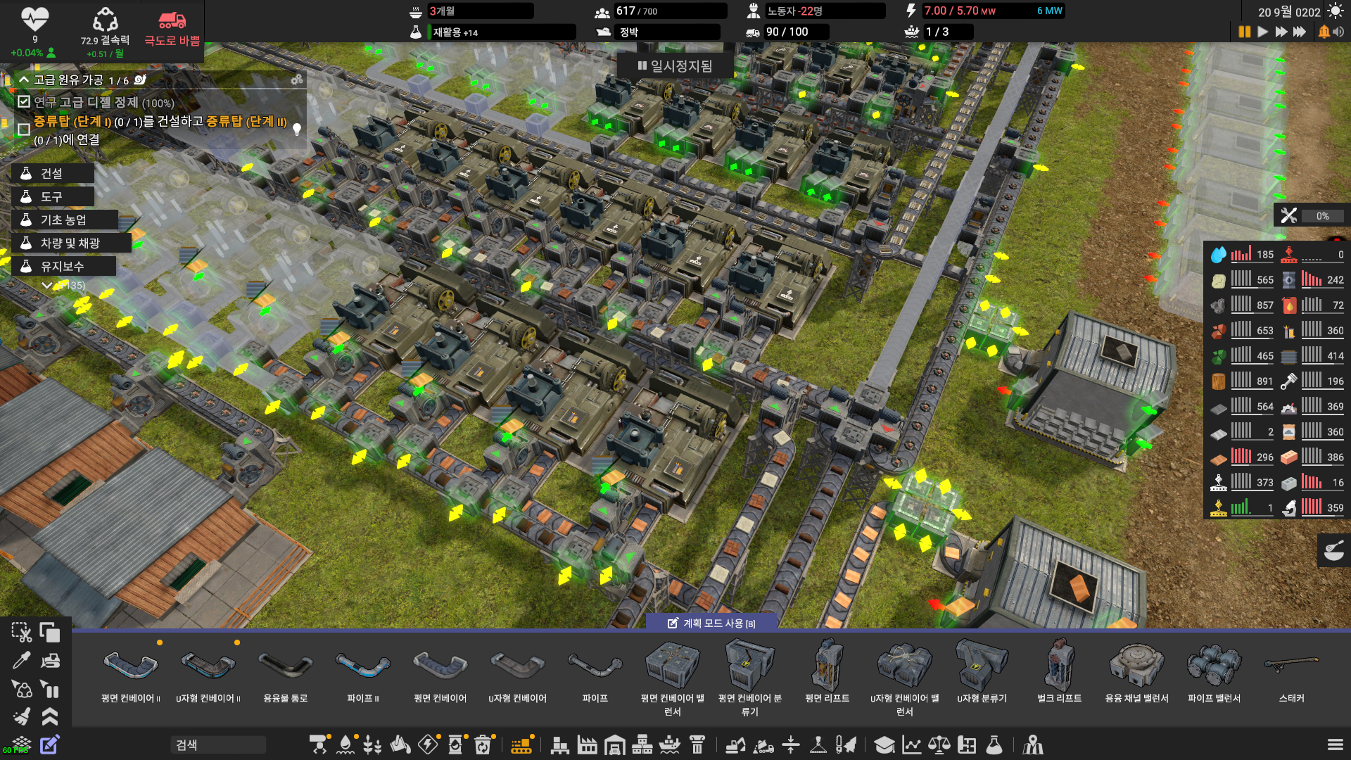 이 게임의 묘미는 간당간당하게 생산과 소비를 조절하면서 완전 자동화로 무한 생산을 하는 것을 목표로 하는 것입니다.