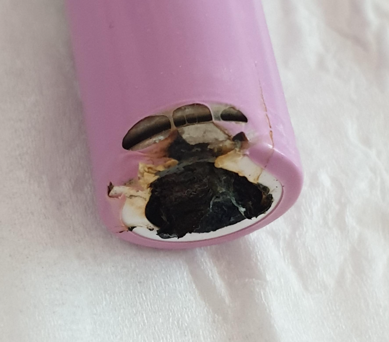 홀더 접점 주변의 플라스틱은 녹아내렸고 잽싸게 배터리를 꺼내서 임시로 보호 가방에 넣은 후 봤더니