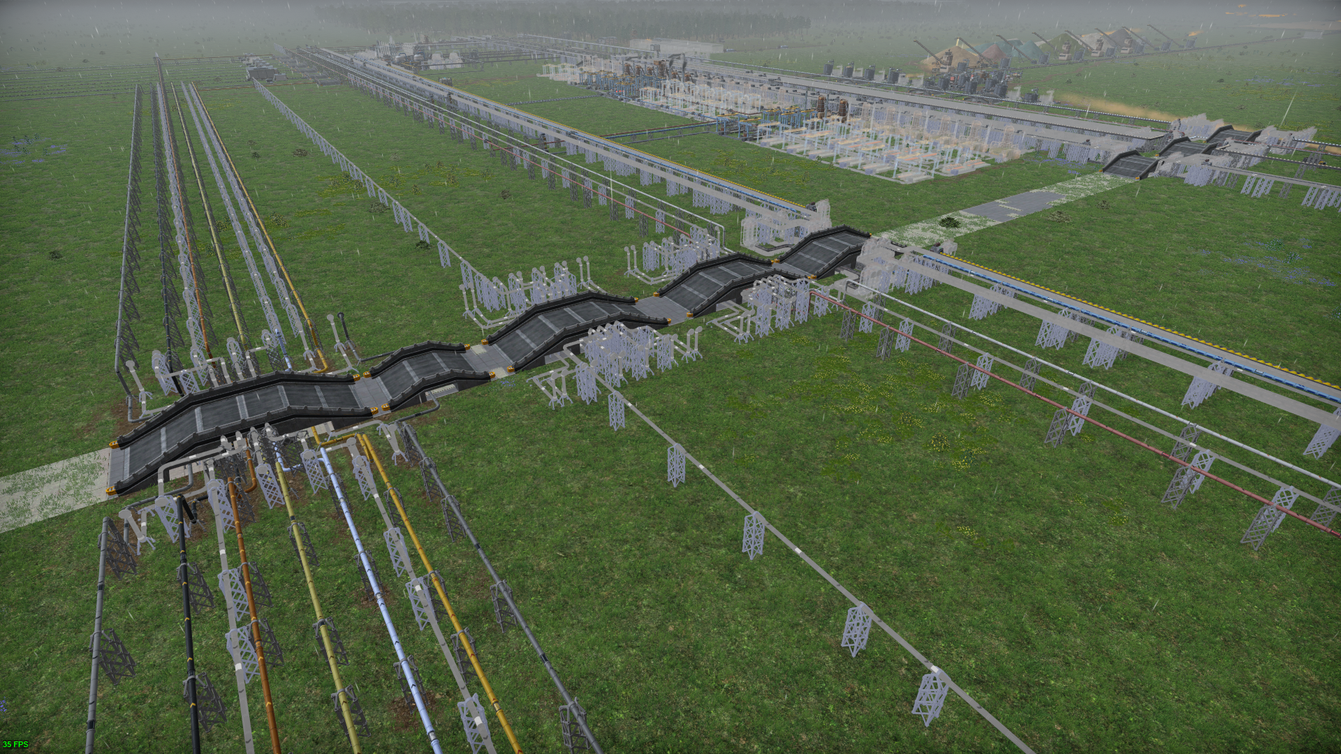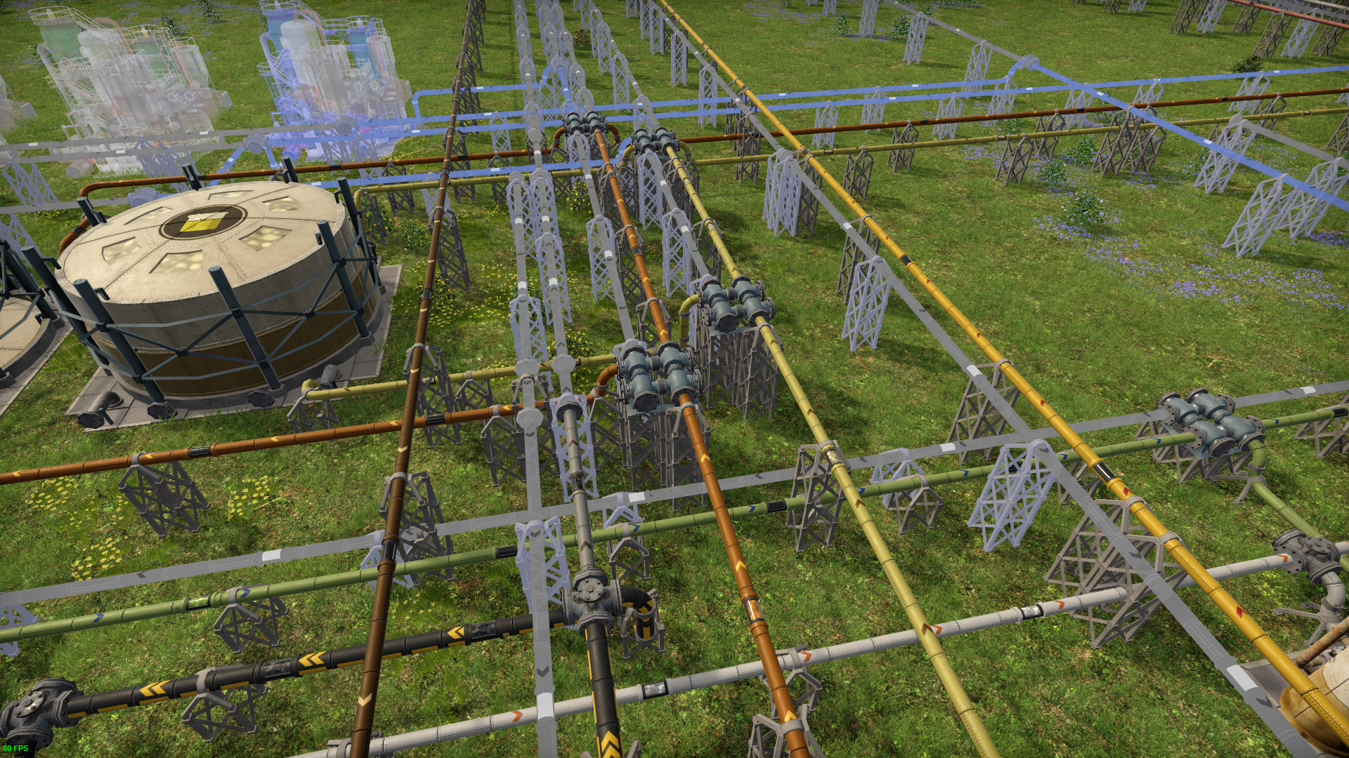 컨베이어와 파이프 4층 이송 영역 사이사이에 건물을 배치할 수 있는 공간을 남겨놓았다. 설계만 잘하면 모든 이송기를 붙일 수도 있다.