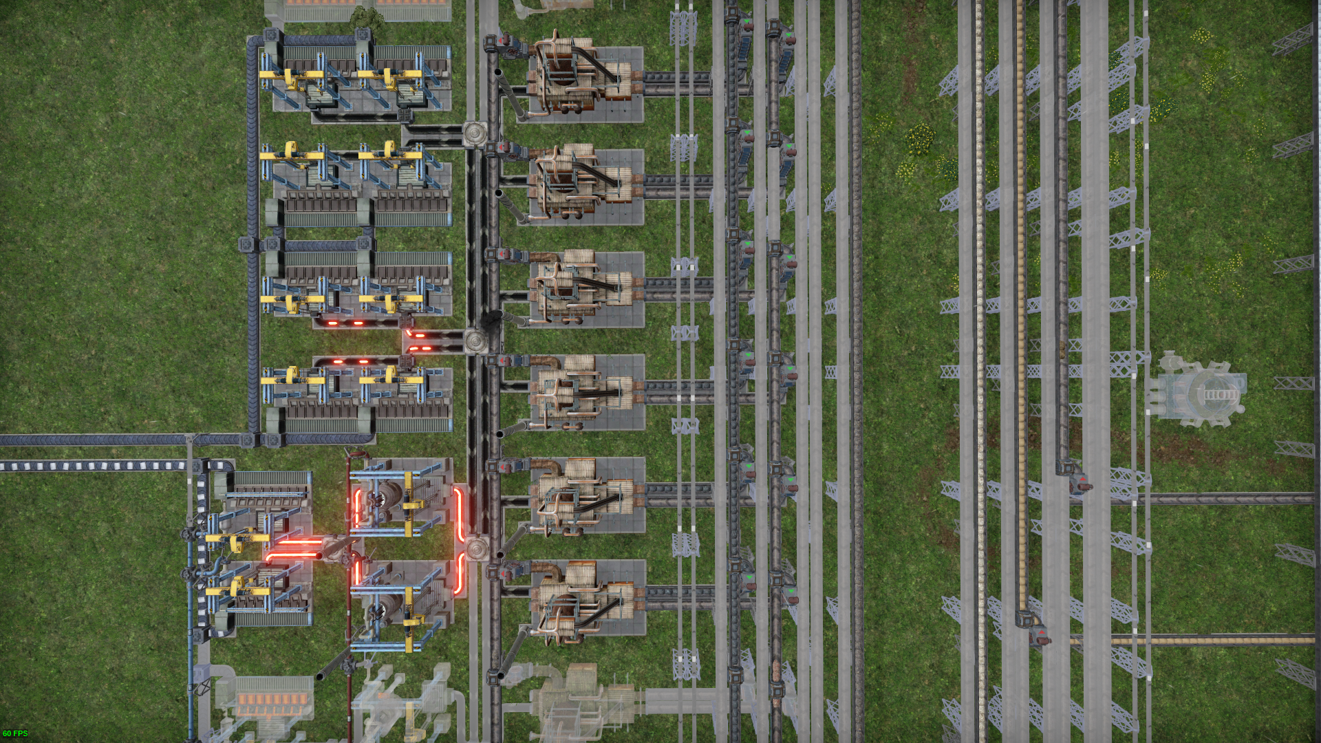용광로를 배치한 모습이다. 단독 설비라면 1~4층 컨베이어를 한 줄에 모두 배치했을 텐데, 무인 장거리 이송 시스템이므로 4층에서 양방향 이송기를 만들고 분기한다.