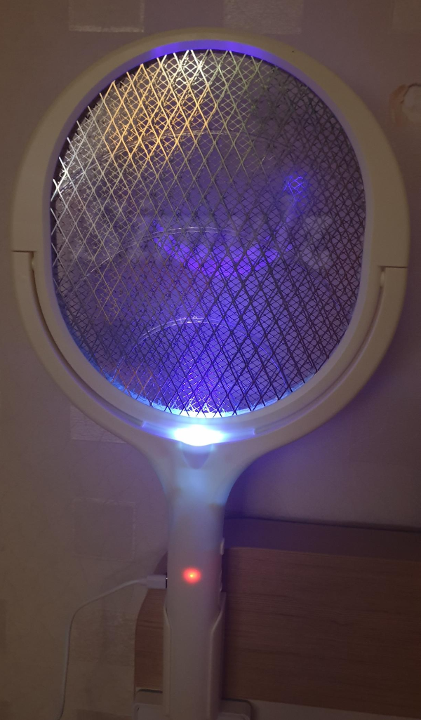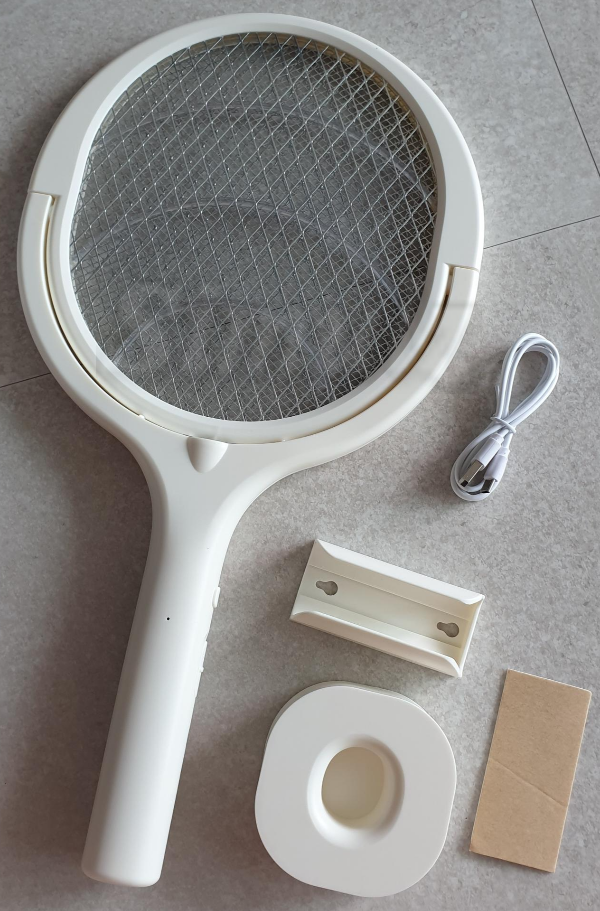주간에는 일반 모기채와 같이 버튼을 눌러서 휘두르면 됩니다. USB-C 충전식입니다.