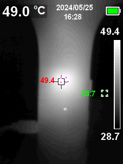 상시 충전 모드일 때에는 위와 같이 택트 스위치 옆에서 발열이 생깁니다. 약 50℃입니다.