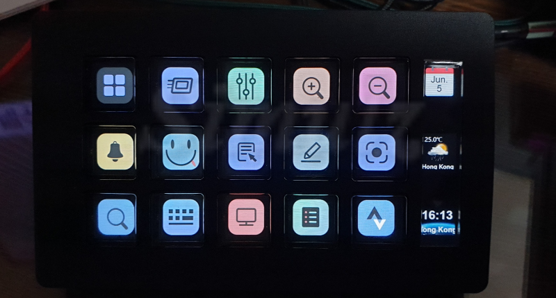이 모델은 매크로 15 키 외에 표시 전용 영역이 함께 있습니다. 32 키가 필요한 것이 아니라면 꼭 Elgato StreamDeck 제품을 사용할 필요가 없습니다. 플러그인 코드는 스트림덱과 호환됩니다.
