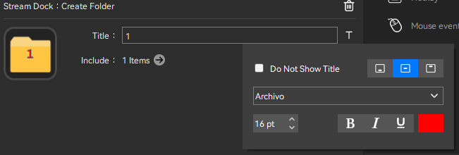 - 폴더는 각 페이지에 여러 개의 폴더를 만들고 그 안에 매크로 아이콘을 등록하는 방법으로 공간을 확장할 수 있습니다. 폴더 내에는 뒤로 가기 고정 아이콘이 1개 포함되어 있으며 14개의 사용자 정의 아이콘을 추가할 수 있습니다. 폴더 밑에 하위 폴더를 추가할 수 있습니다.