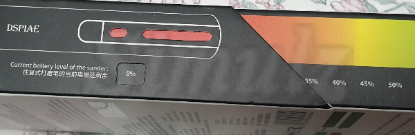 상자 옆면에는 구멍이 뚫려있는데 내부 상자를 움직이면 외부 상자의 구멍에서 색과 값이 바뀌는 것을 볼 수 있습니다. 제품의 LED 색상으로 배터리 잔량을 확인할 수 있음을 알려주는 신박한 디자인입니다. 박스만 봐도 중국의 고급 브랜드라고 볼 수 있습니다.
