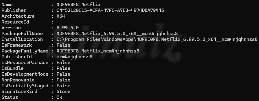 Get-AppxPackage | Where-Object {$_.Name -like "*netflix*"}