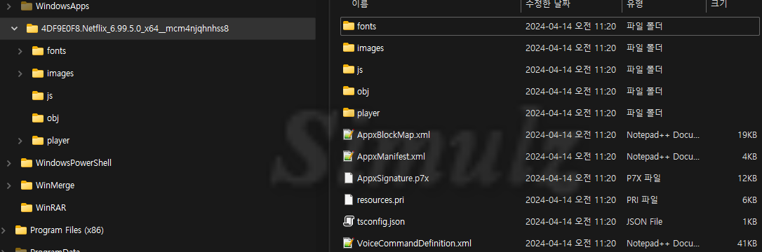 WindowsApps 폴더는 사용자 접근 권한이 막혀있어 권한을 얻기 전에는 접속이 불가능하여 각 App 폴더로 직접 이동해야 합니다.