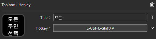 프로그램에서 다음과 같이 필요한 기능을 Hotkey 아이템으로 배치 후