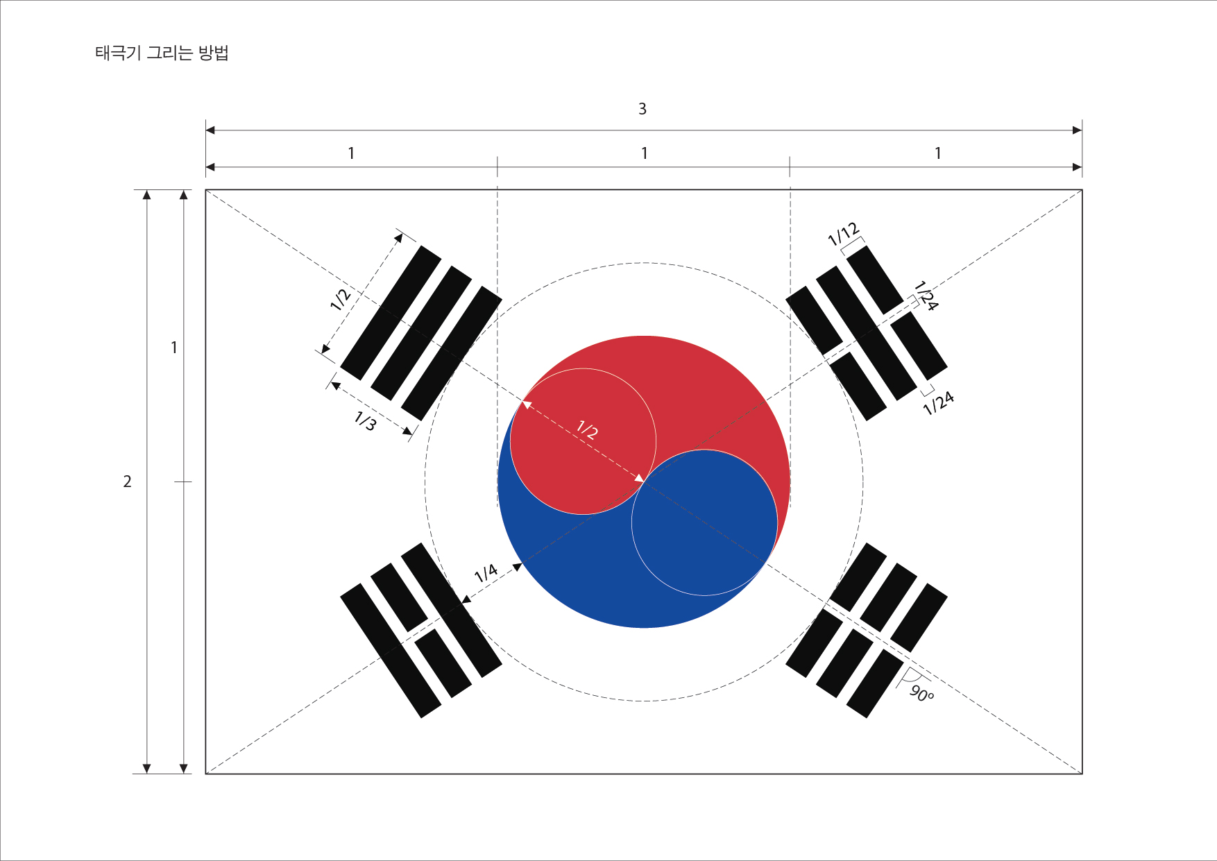 소수점을 사용하지 않기 위해, 태극기의 세로길이는 96의 배수를 사용합니다.