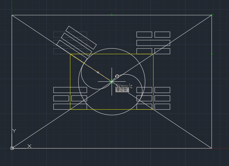 시작점: 원과 대각선의 교차점 클릭