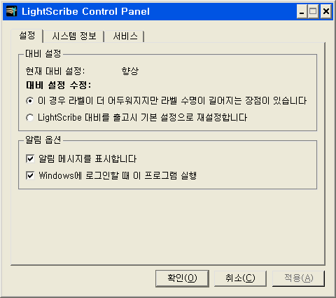 다양한 템플릿이 있는 LightScribe Template Labeler를 사용하는 것이 더욱 좋은 것 같습니다.