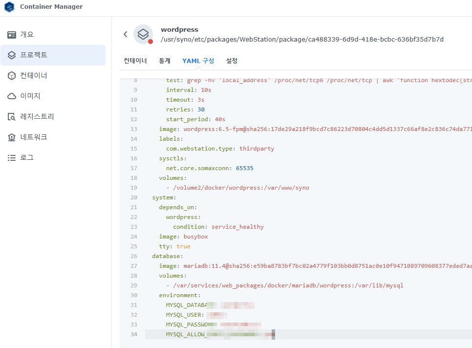 컨테이너 매니저에서 설치하면 컨테이너 설정, 역방향 프락시 설정, 마운트 설정, APM 설정 등이 어렵고 복잡합니다.