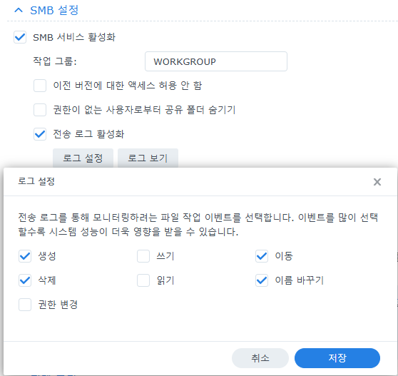 각종 로그 기능에서 꼭 필요한 부분만 활성화하거나 로그 기능을 해제한다.