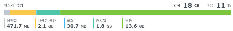 웹서버가 동작중인데도 메모리 여유가 많다.