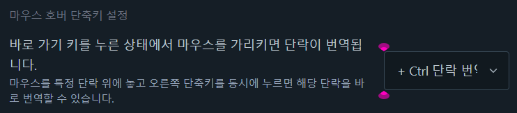 확장을 설치하면 원문과 번역문이 같이 출력되기 때문에 순정 번역처럼 사용하고 싶다면 설정을 변경해야 합니다.