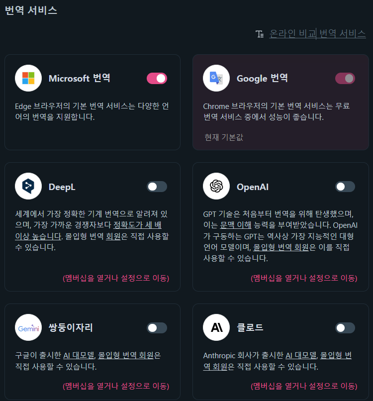 순정 번역은 원문을 보려면 페이지를 새로고침해야 하지만, 확장을 사용하면 즉시 전환이 가능합니다. 설정에서 오직 번역 모드만 항목을 켰을 때 유용합니다.