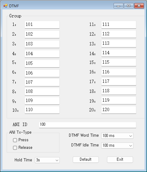 - 23.PTT-Latency: PTT-ID 전송 지연 시간 설정.