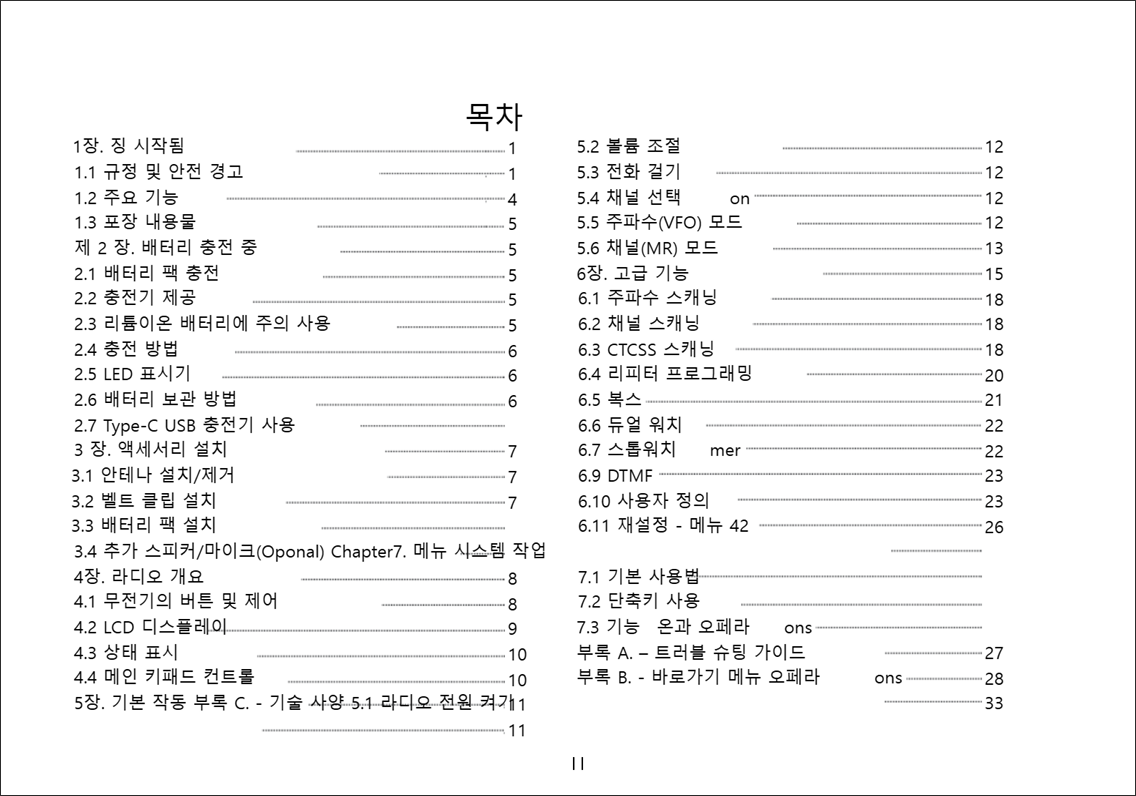 - 33.스켈치 꼬리 제거: 바오펑 무전기 끼리 통신할 때 스켈치 테일 노이즈를 제거합니다.